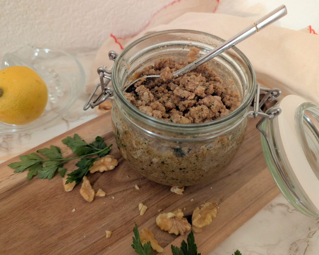 Riche en bonnes graisses et en goût, ce pesto accompagne aussi bien des pâtes complètes, des légumes rôtis ou une tartine gourmande.